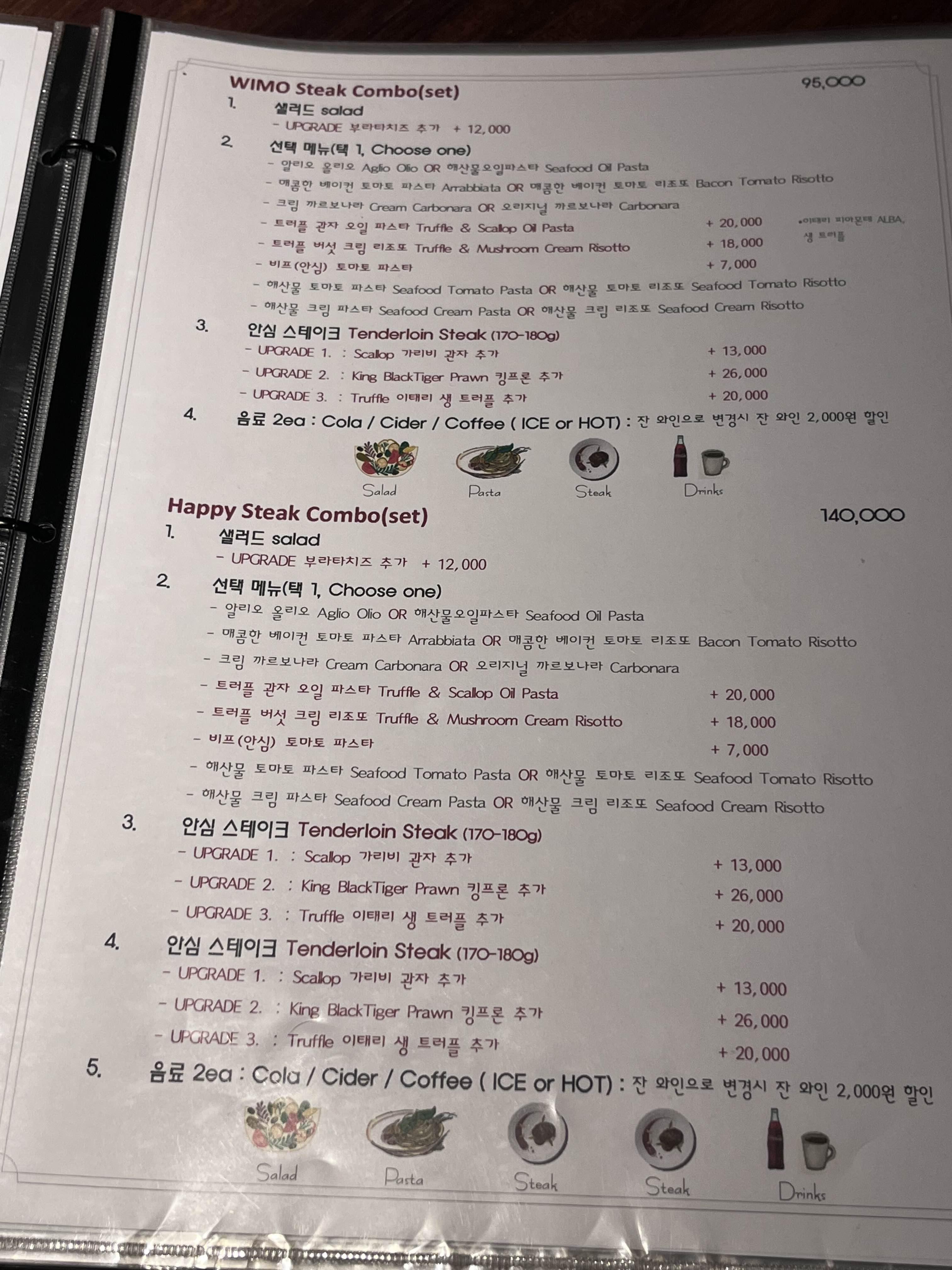 저는 위모 스테이크 콤보 세트 주문했어요