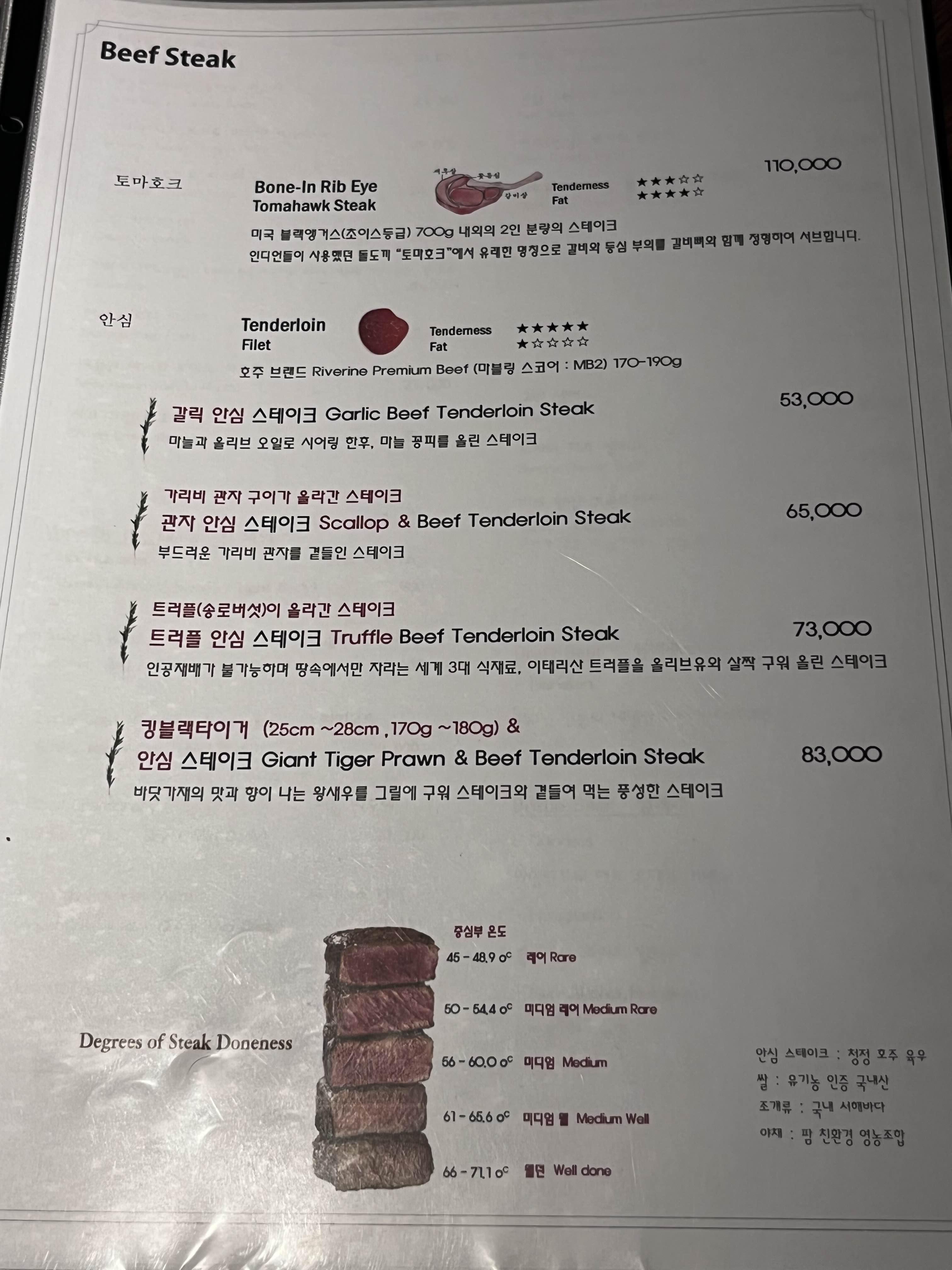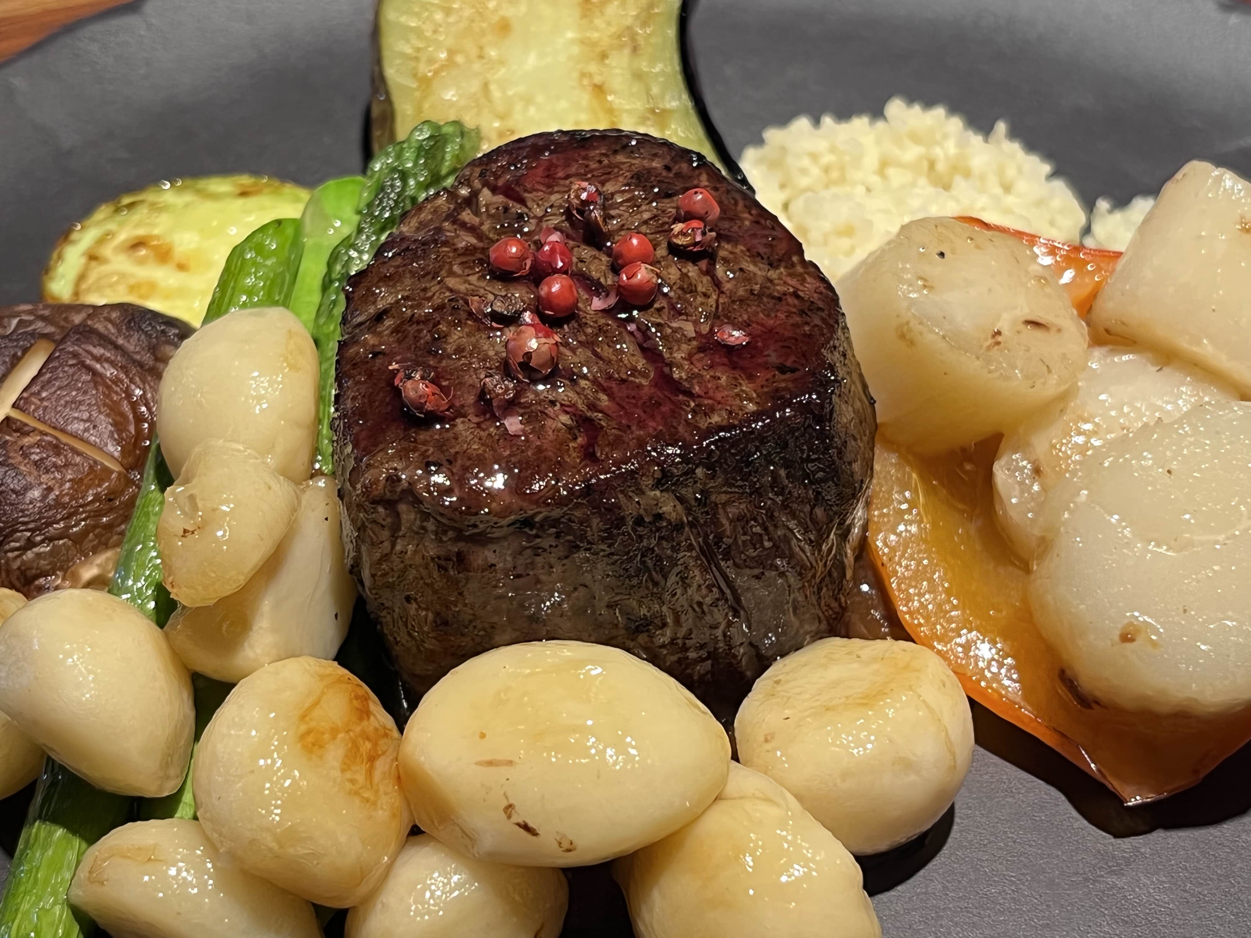 안심 스테이크에는 가리비 관자를 추가했고