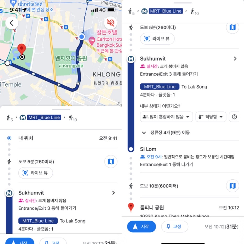 먼저 칼튼 호텔에서 스쿰빗 역까지 걸어가서