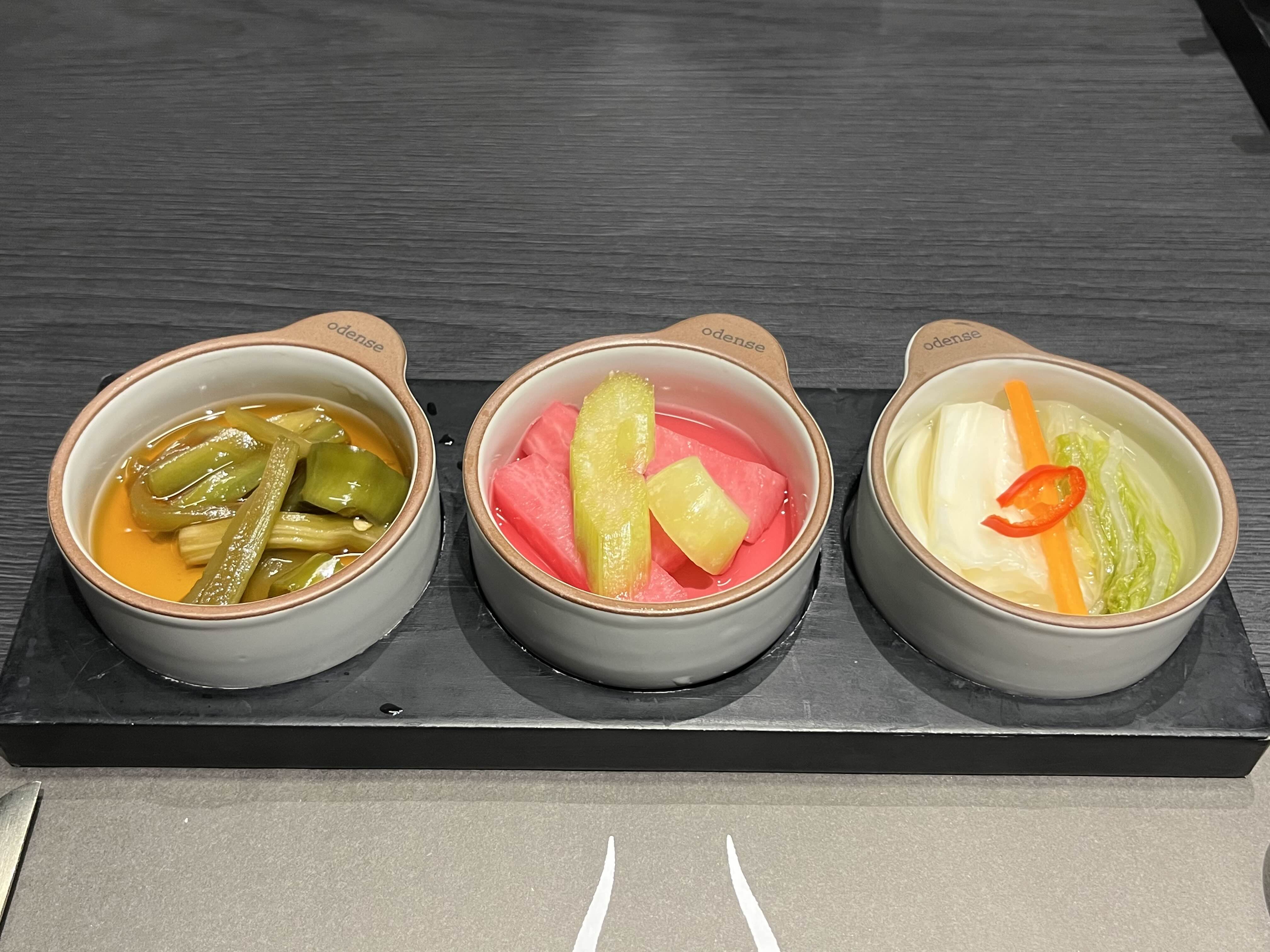 반찬으로 나온 궁채라고 불리는 상추줄기장아찌랑 셀러리 무절임, 백김치도 깔끔하게 맛있었다