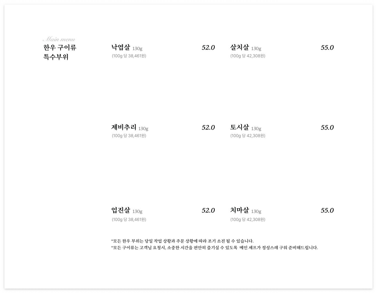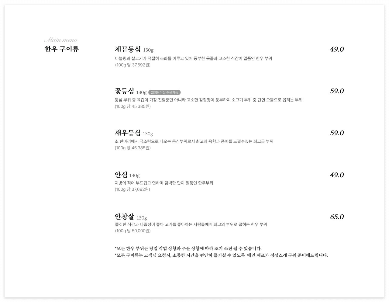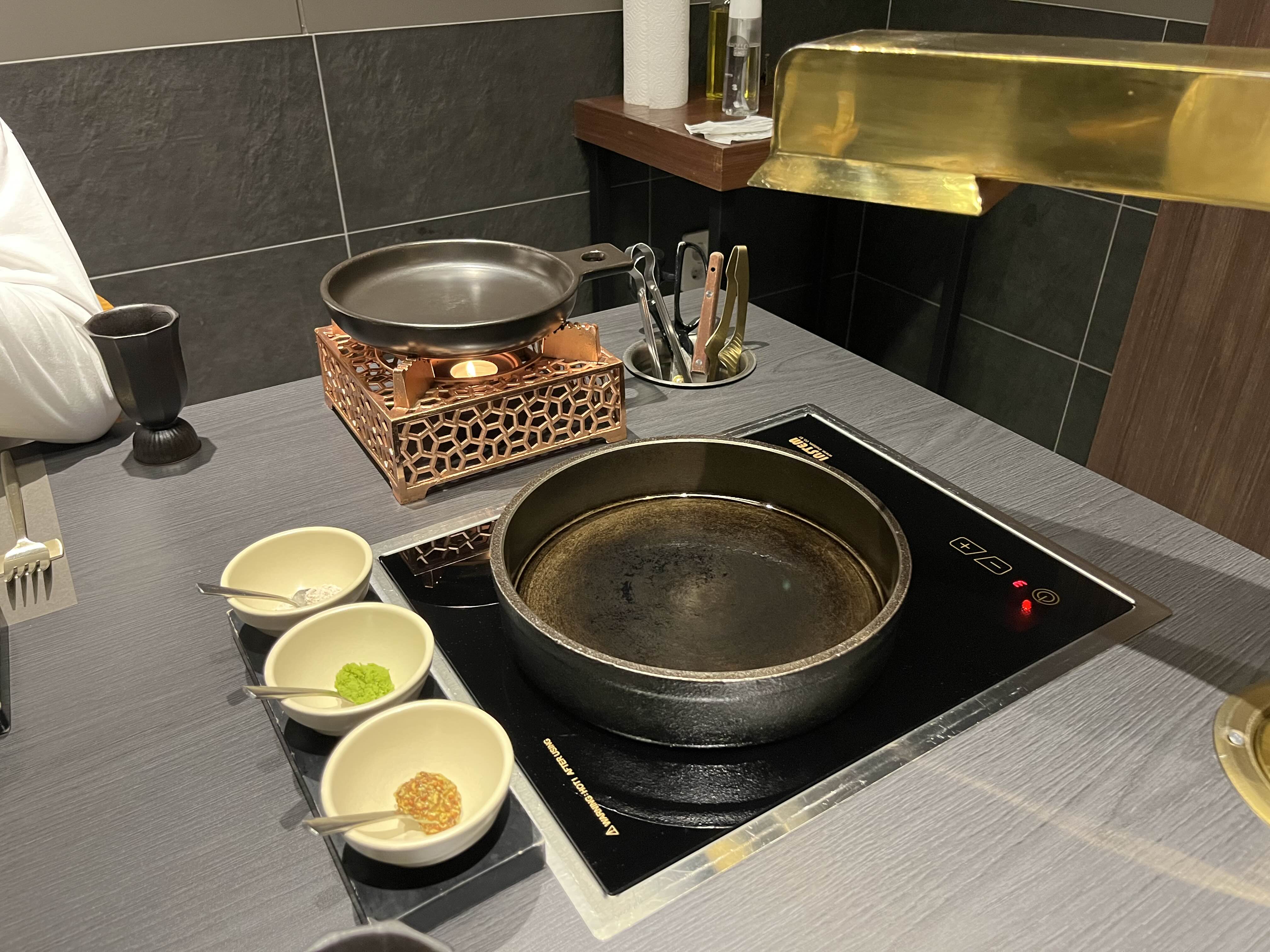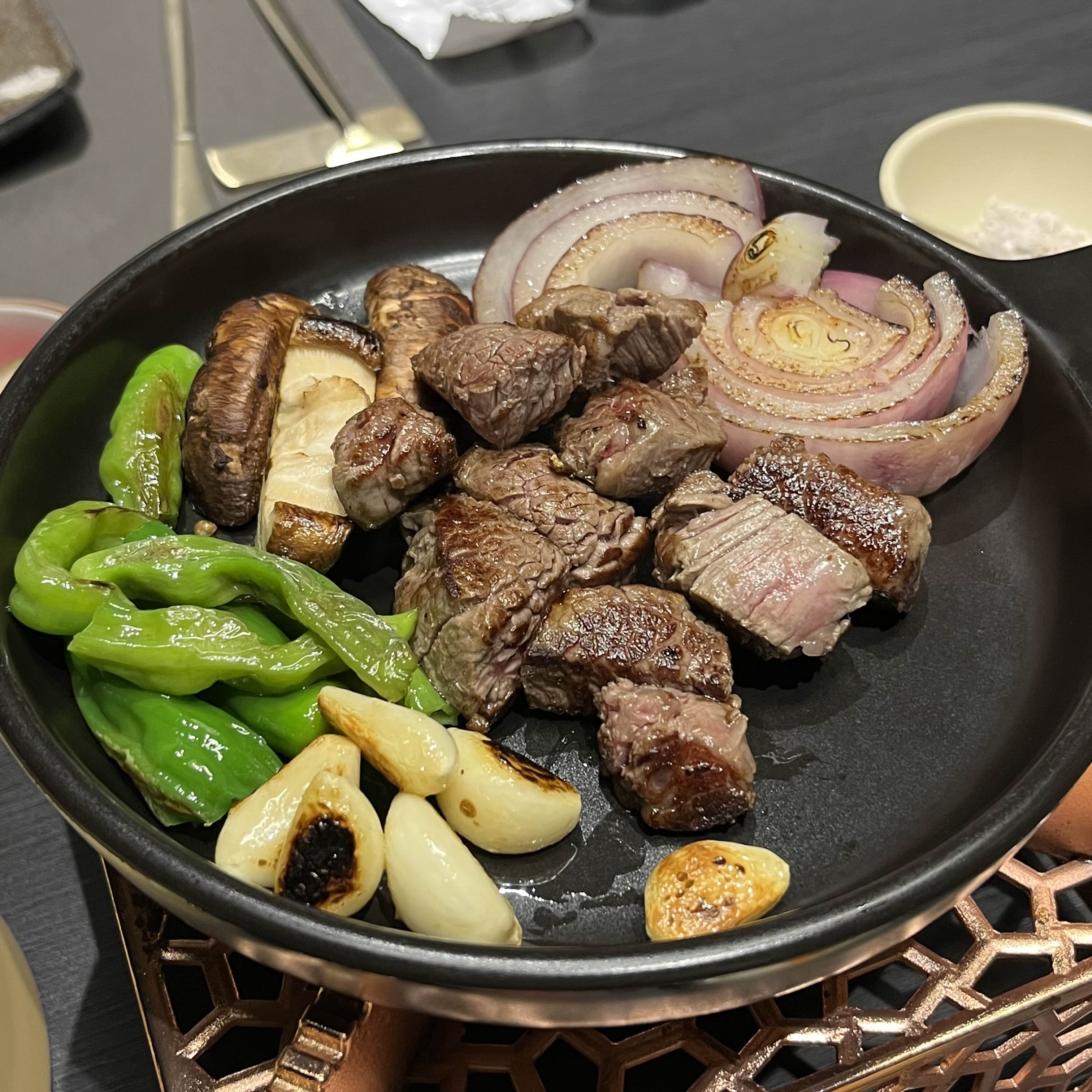 구워진 고기는 촛불로 따듯하게 유지해 줘서 다 먹을 때까지 좋았고 안심 먼저 구워주시고 나가시면서 새우등심 굽고 싶을 때 다시 불러달라셔서 천천히 즐기기 좋았다