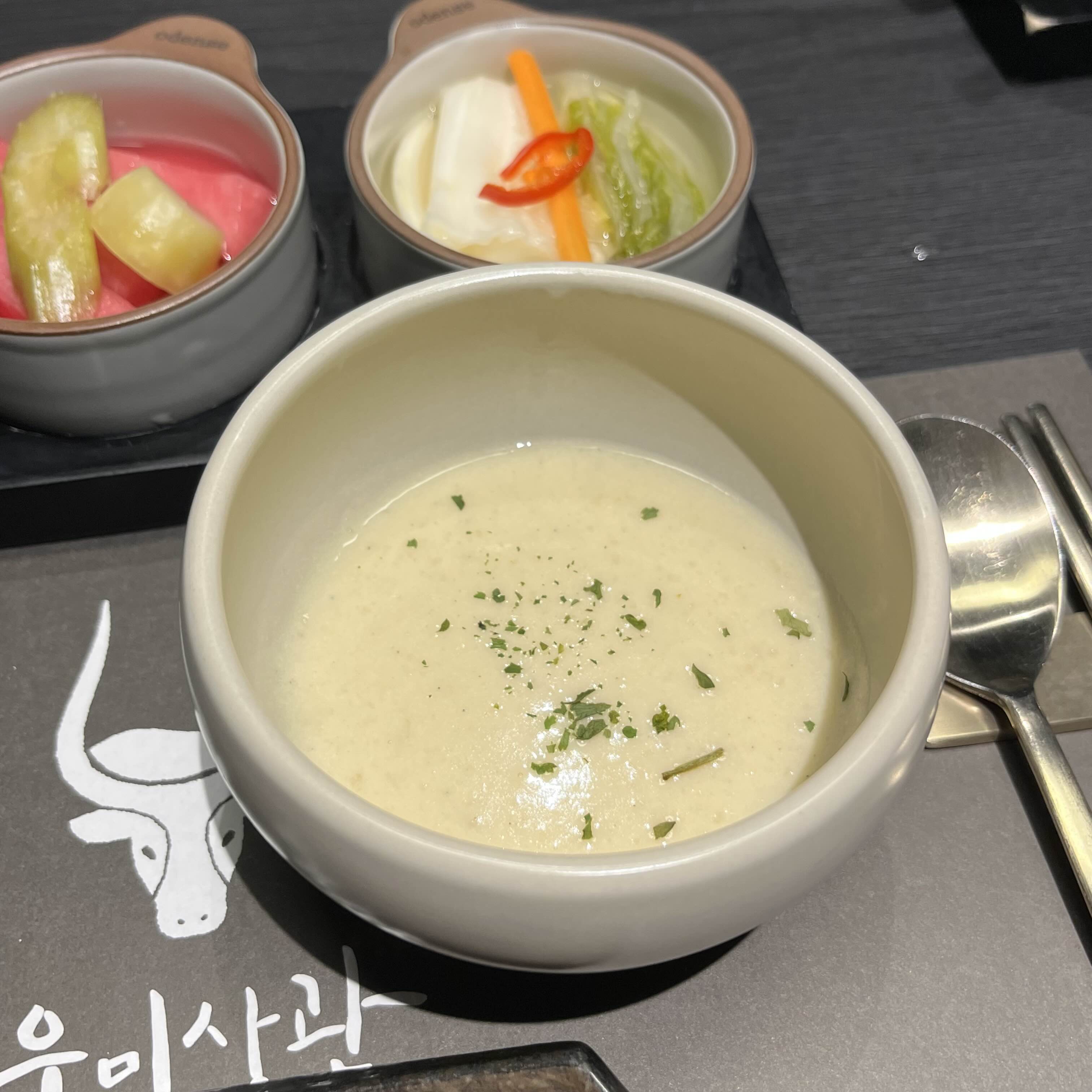 고기 구워주시기 전에 에피타이저 스프가 나온다