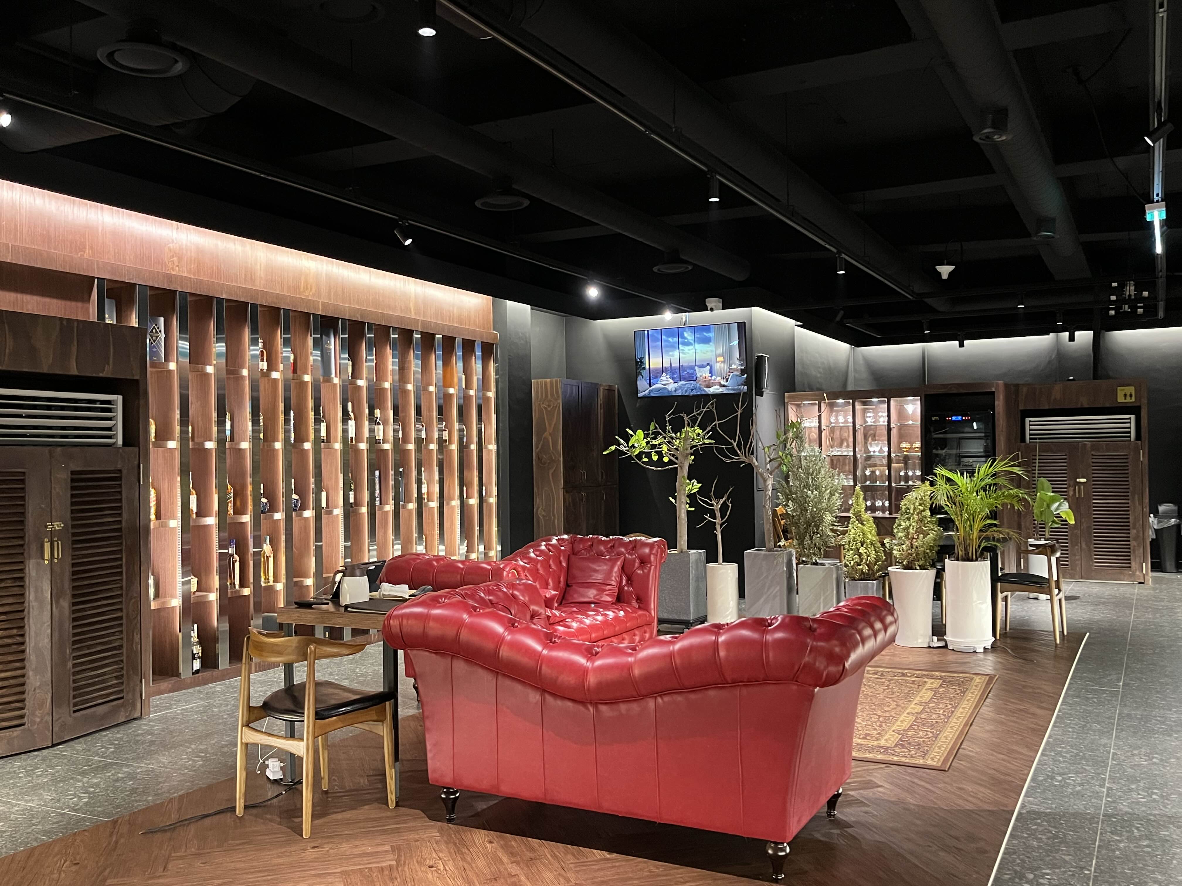 인테리어를 블랙을 써서 그런지 좀 더 고급진 느낌이었고 가게 중앙에 위치한 빠~알간 광택 있는 소파가 시선강탈이었음, 겨울 저녁에 가서 그런지 전체적으로 어둑어둑하게 느껴지는 분위기였다
