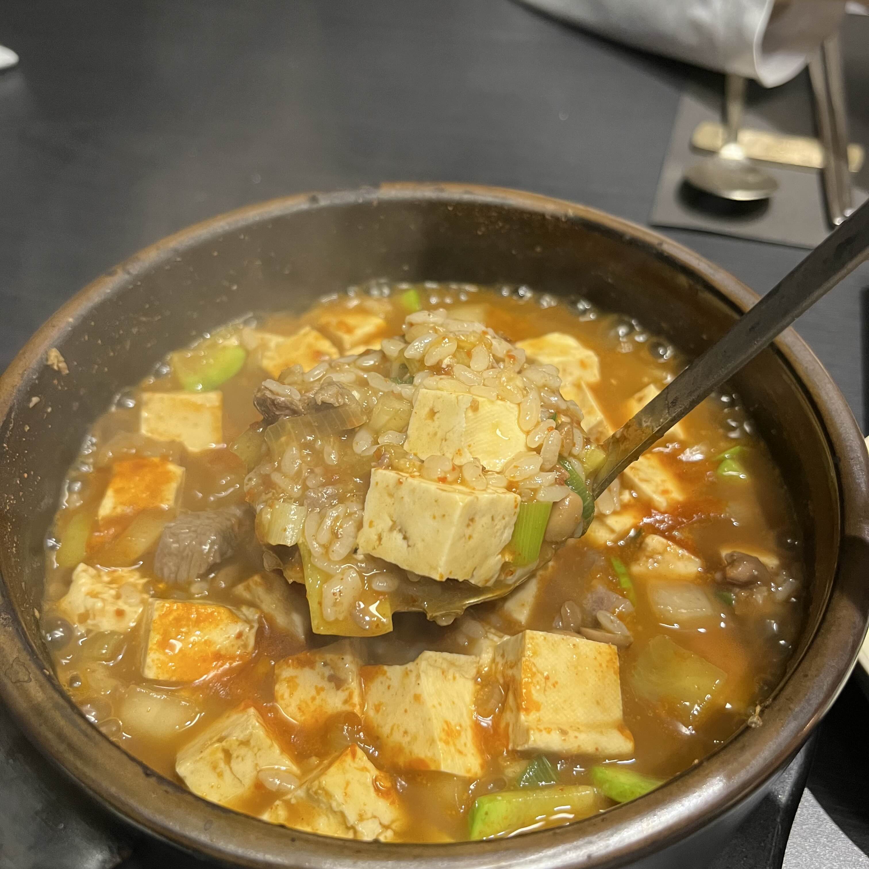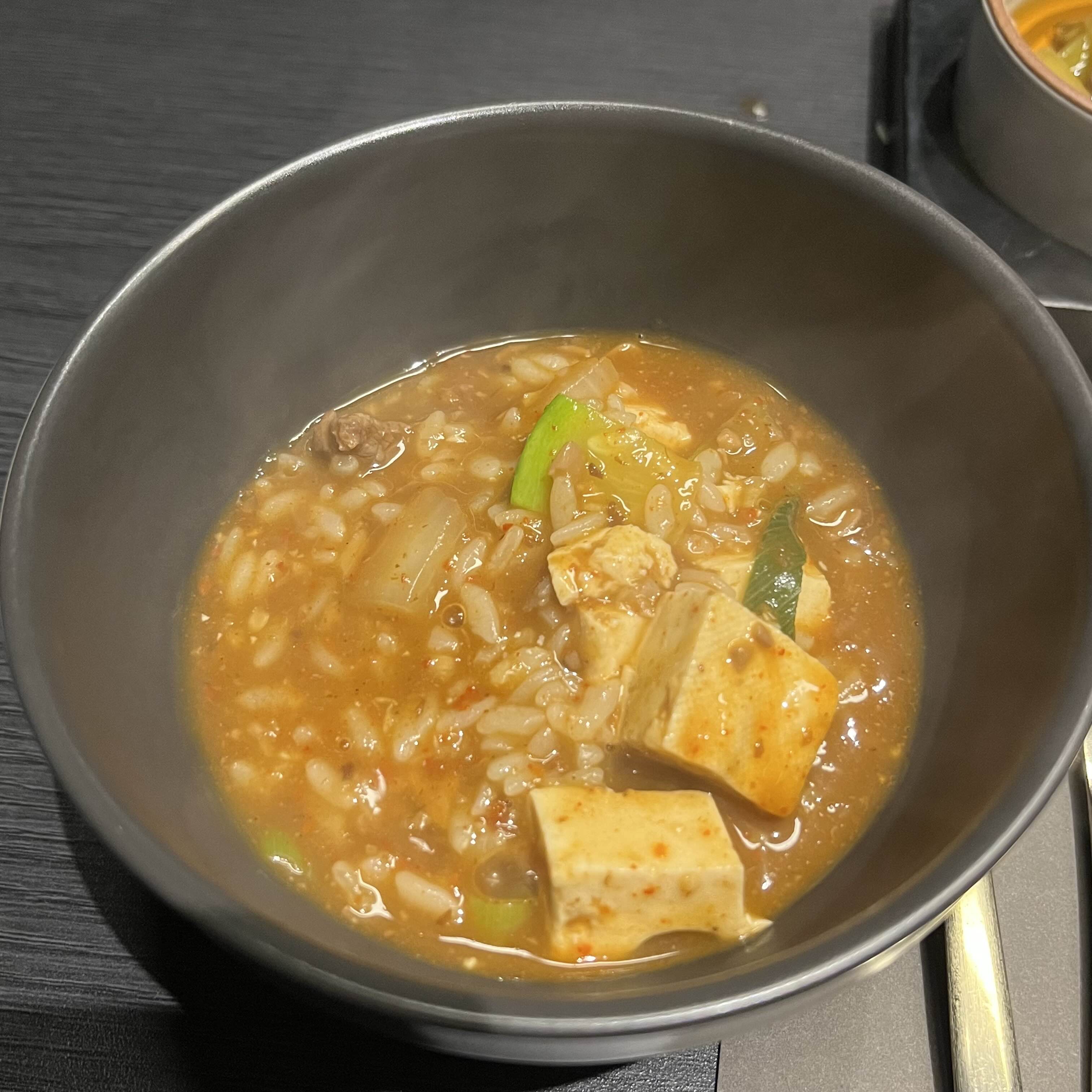 나 또 한국인이니까 밥은 먹어줘야 해서 시킨 한우된장밥인데 안시켰음 큰일날뻔했다, 솔직히 고기 먹고 고기 들어간 된장 먹으면 물리는데 이건 바닥까지 긁어먹음, 양도 엄청났는데,,,만사천원이라 뭐이케 비싸 했는데 가격에 떨어지는 퀄리티는 아니었다