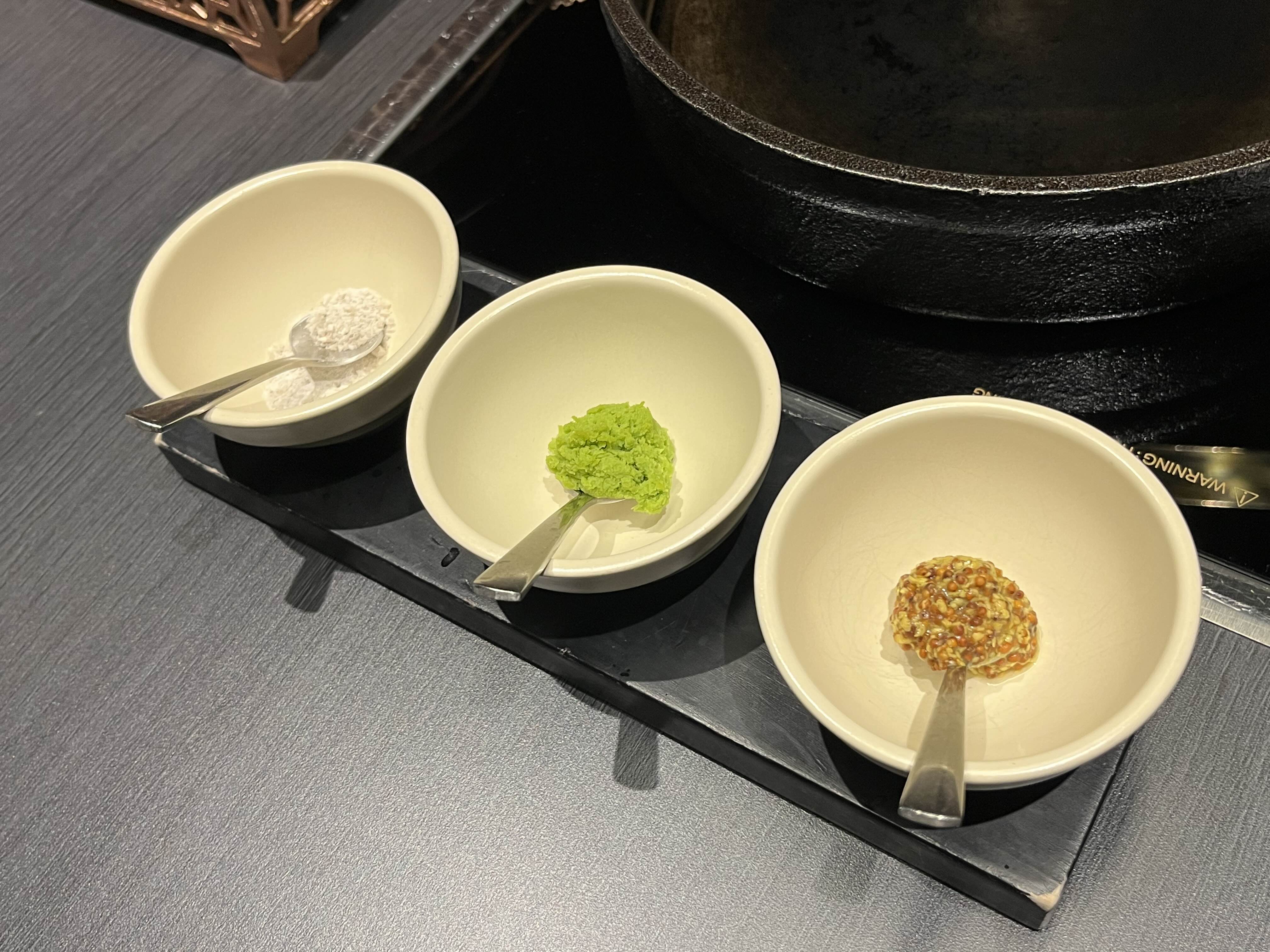 소금이랑 고추냉이, 홀그레인 머스터드 이렇게 3가지 있는데 고추냉이 퀄리티가 조금 아쉬웠다