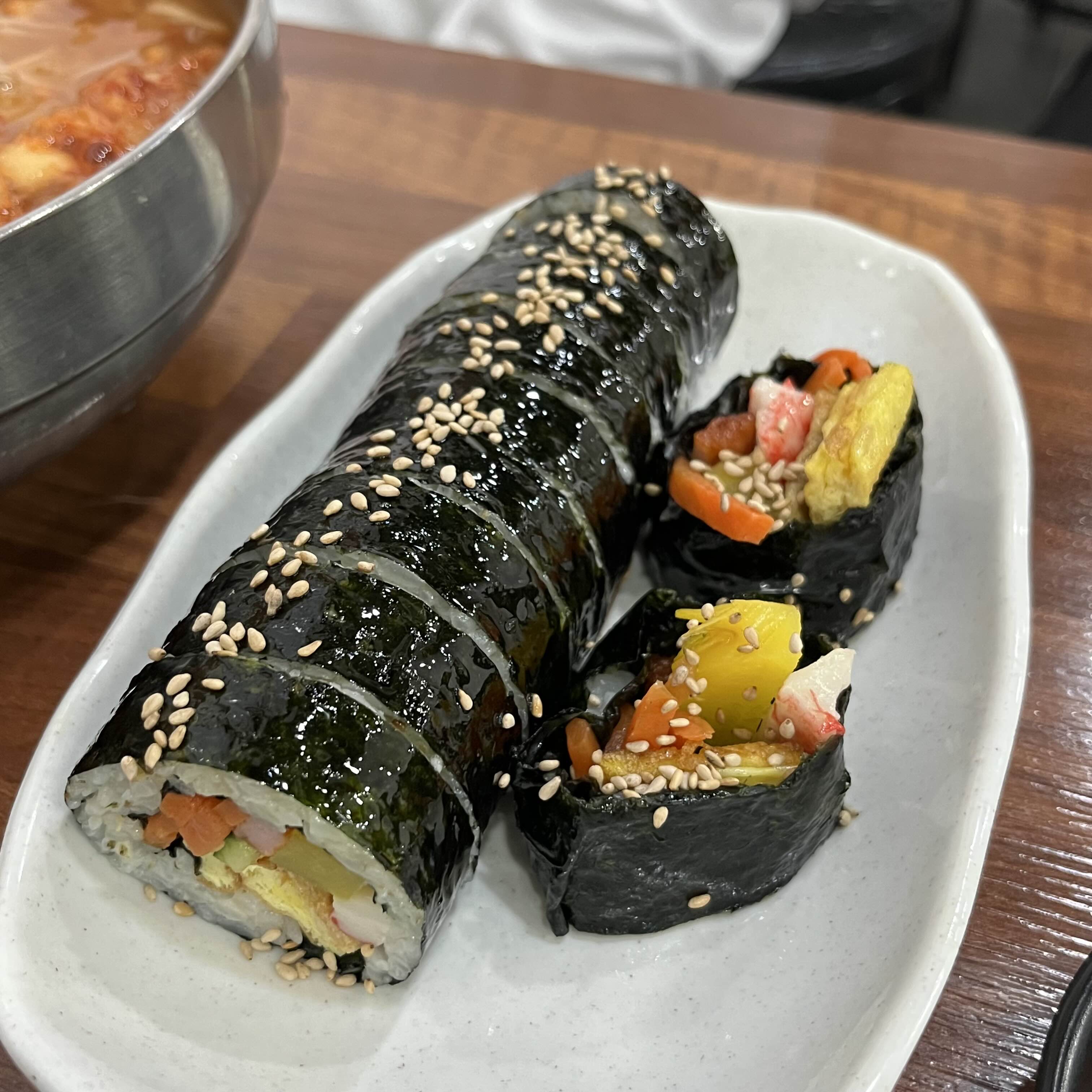김밥이 신의 한수였다 볶은 당근이 많이 들어가 있어서 부드러운 느낌이 강했다 👍퐁신퐁신