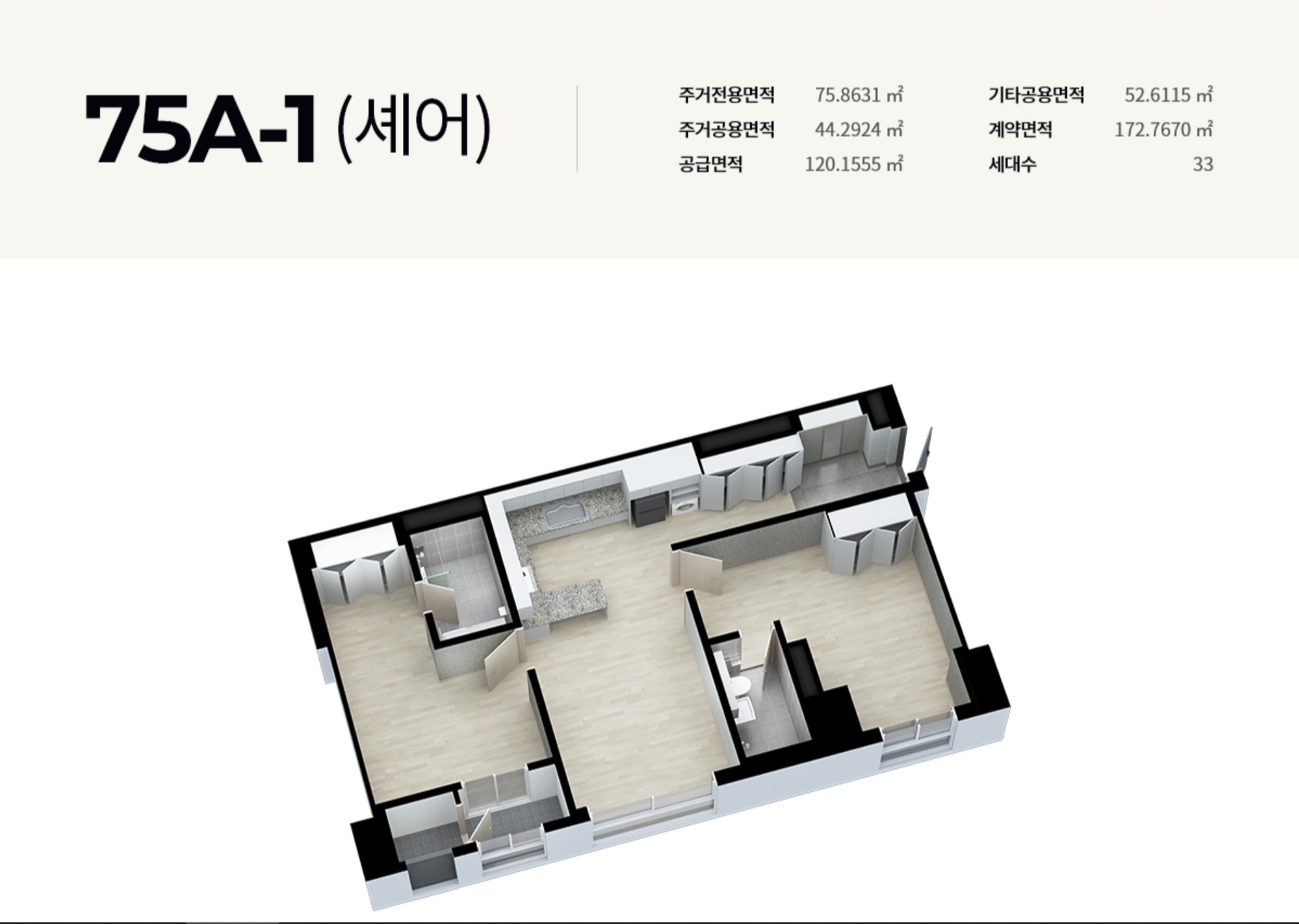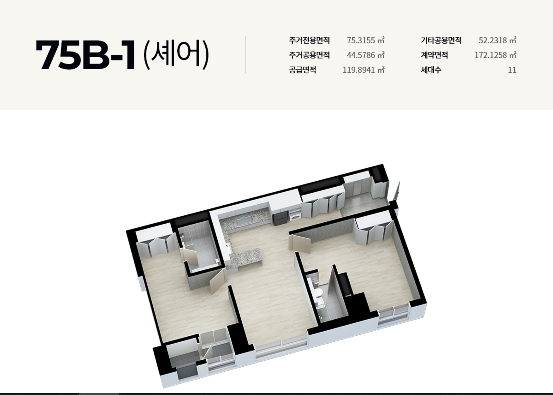 75㎡ 셰어형 및 75㎡-84㎡ 172세대